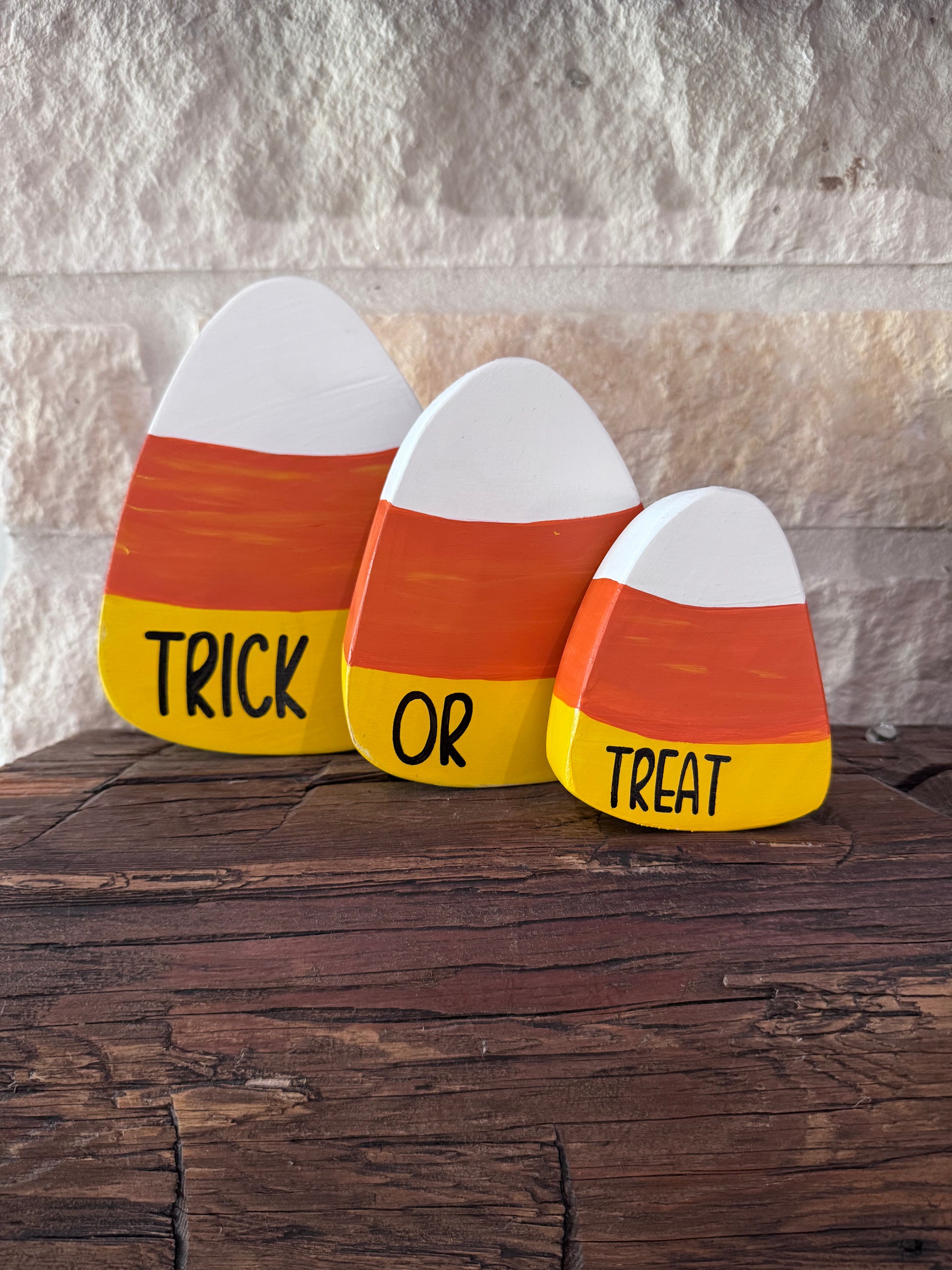 Add a playful pop of Halloween fun with our handmade Candy Corn décor. Bright, festive, and full of charm, it’s the perfect accent for shelves, trays, or party displays — a treat that never disappears!
